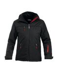 • Men's padded jacket with detachable hood, chest, front and sleeve pockets.